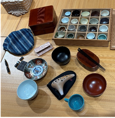 第一回目の活動では、参加者がそれぞれ日常生活で使っている工芸品の実物を持ち寄り、鑑賞や交流を行いました。部長の漆原さんによる伝統工芸部の趣旨説明の後、参加者全員が自己紹介を行い、各々が持参した工芸品について紹介しました。