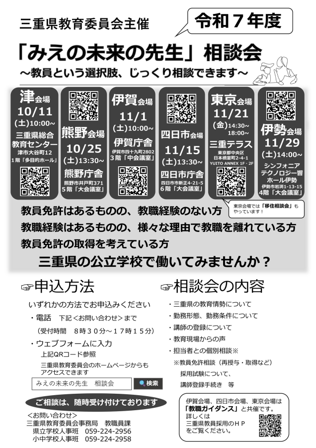 県立学校人事班 059-224-2956