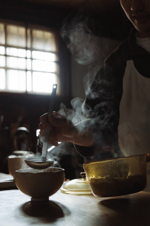 良きものが世に広く伝わることを願い、主に近隣の愛ある作り手による作物や、自ら育てた野菜を使用。「食材のこと」「生産者のこと」「日々の料理のこと」を